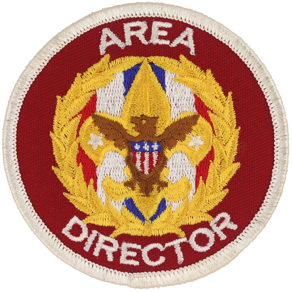 - Design: Gold Tenderfoot emblem with brown eagle, red-white-blue-white-red behind emblem, gold wreath, and white lettering "AREA DIRECTOR"