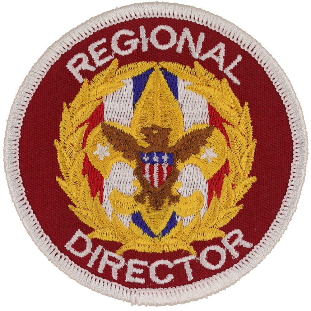 - Design: Gold Tenderfoot emblem with brown eagle, red-white-blue-white-red behind emblem, gold wreath, and white lettering "REGIONAL DIRECTOR"