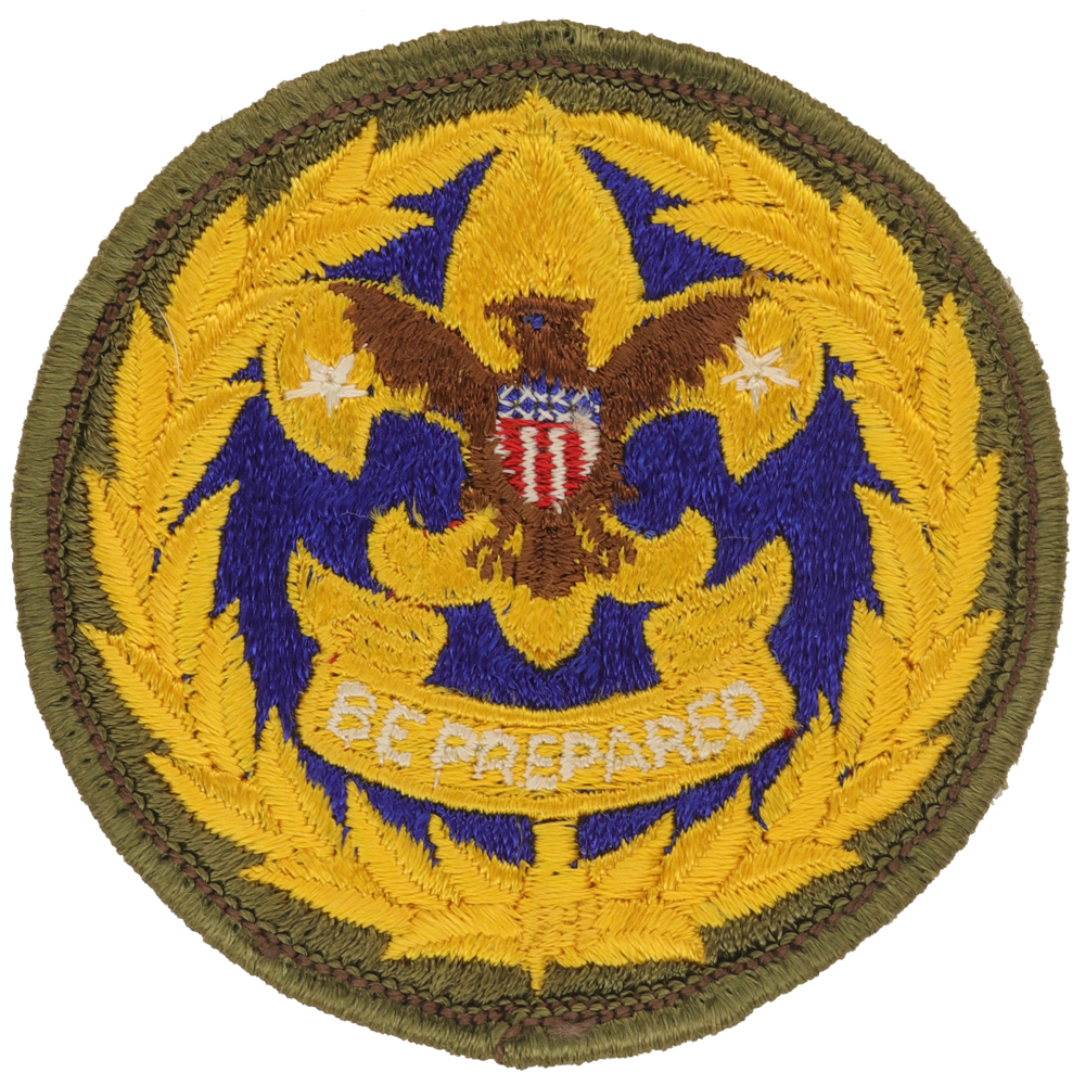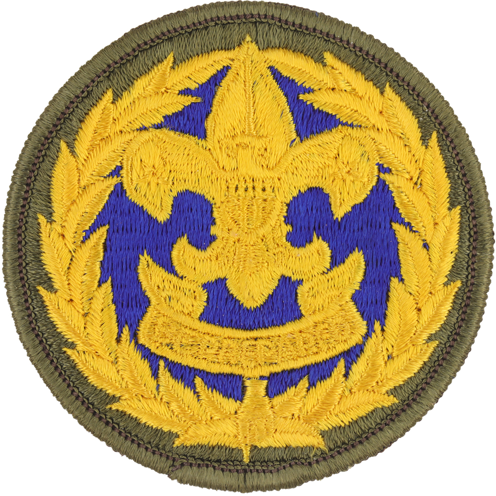 - Design: Gold Tenderfoot emblem with brown eagle, light brown border, three tail feathers