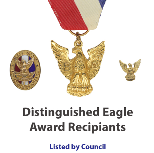 Lists of Distinguished Eagle Recipients by council, alphabetically and by year.