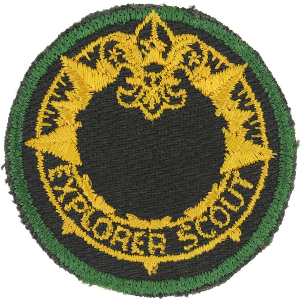 - Design: Light green border, gold compass ring, gold Tenderfoot emblem and gold "EXPLORER SCOUT", blank center