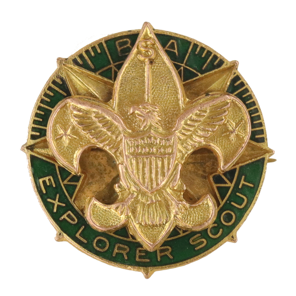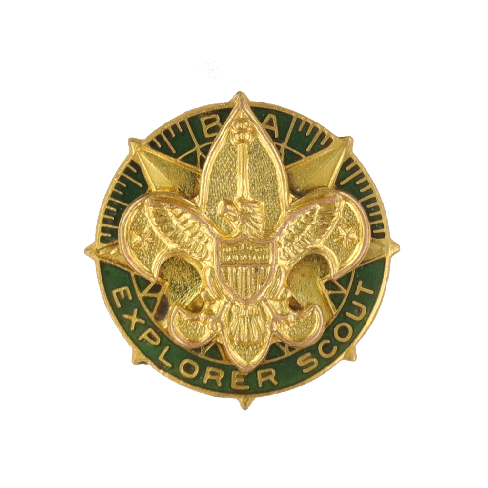- Design: Compass ring, Tenderfoot emblem and "BSA EXPLORER SCOUT"
