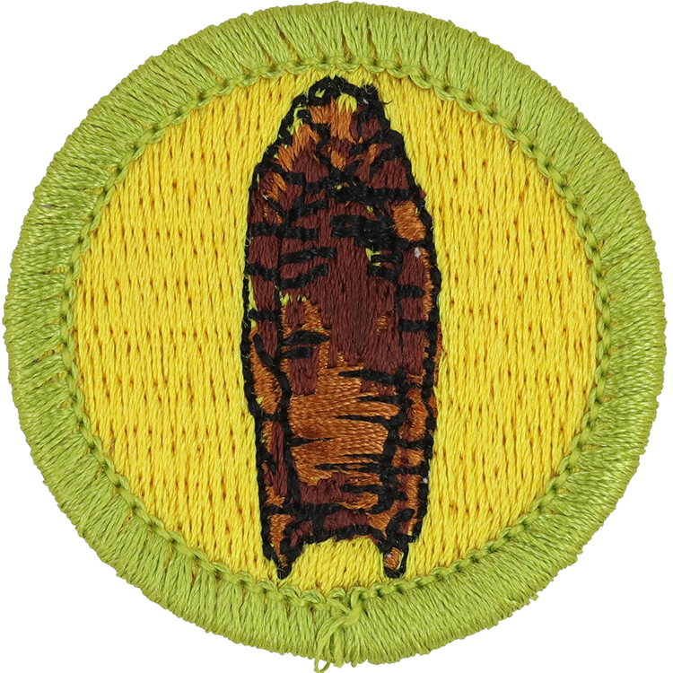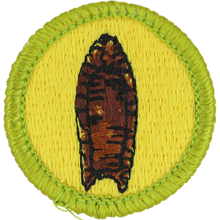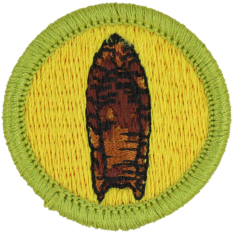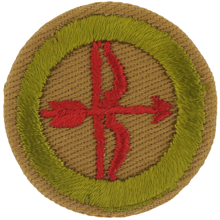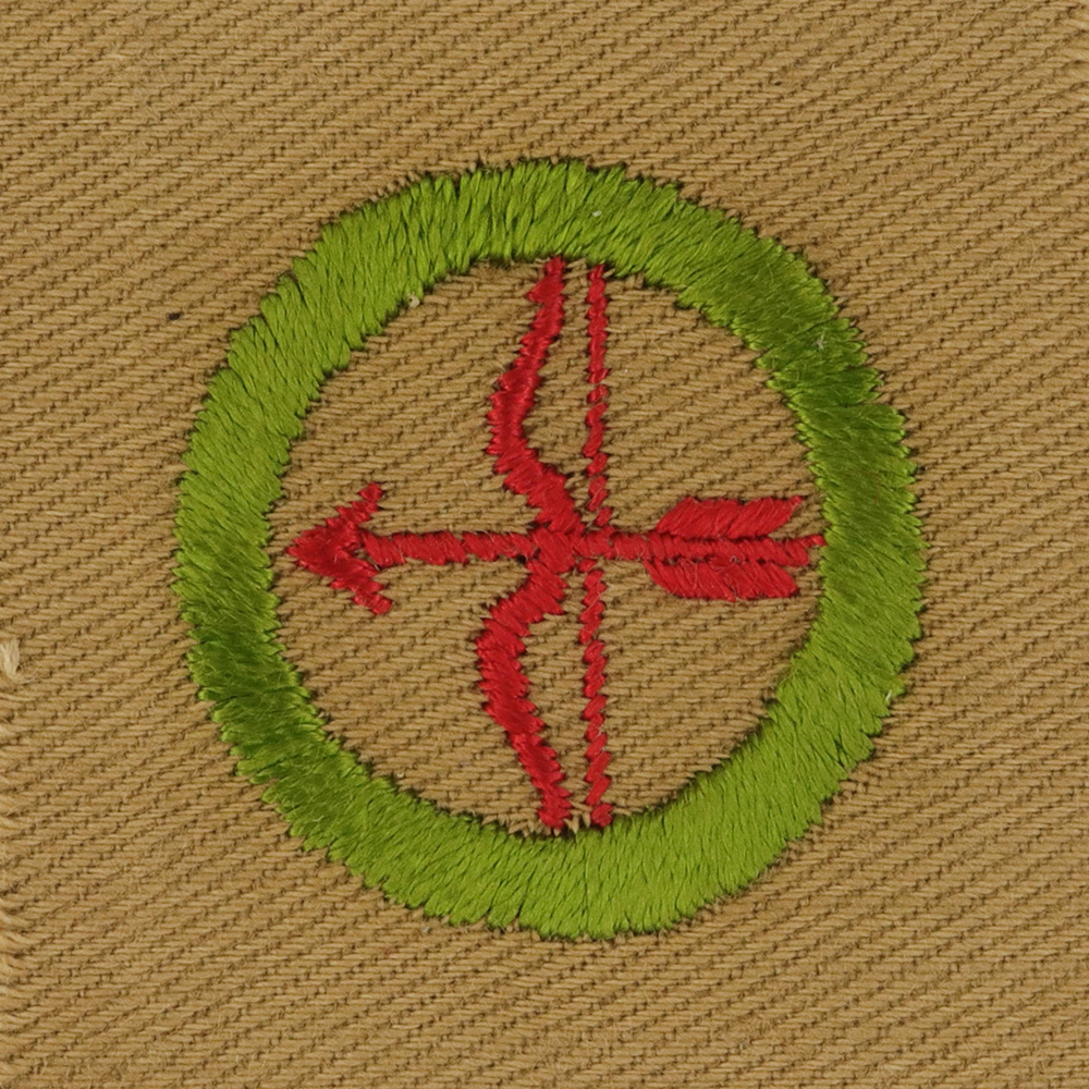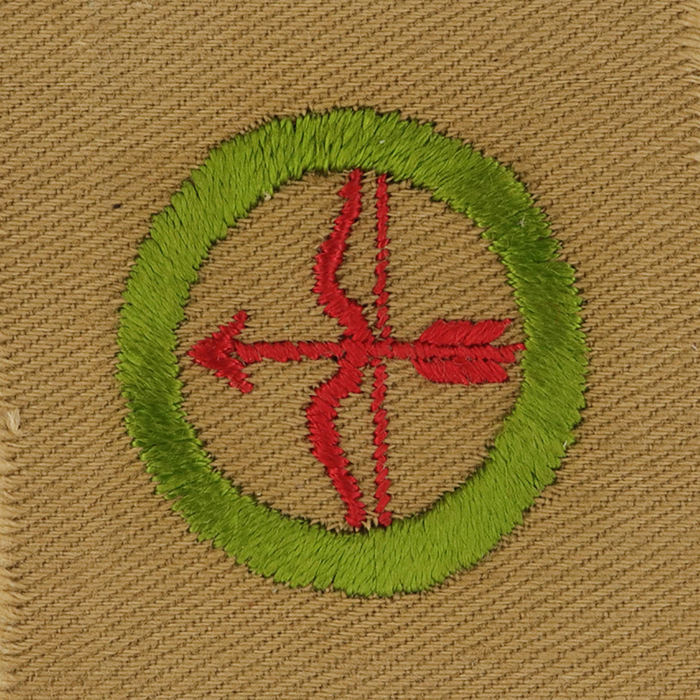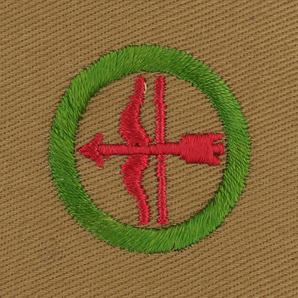 - Design: Bow squared where arrow crosses, bow string embroidery is downward left to right