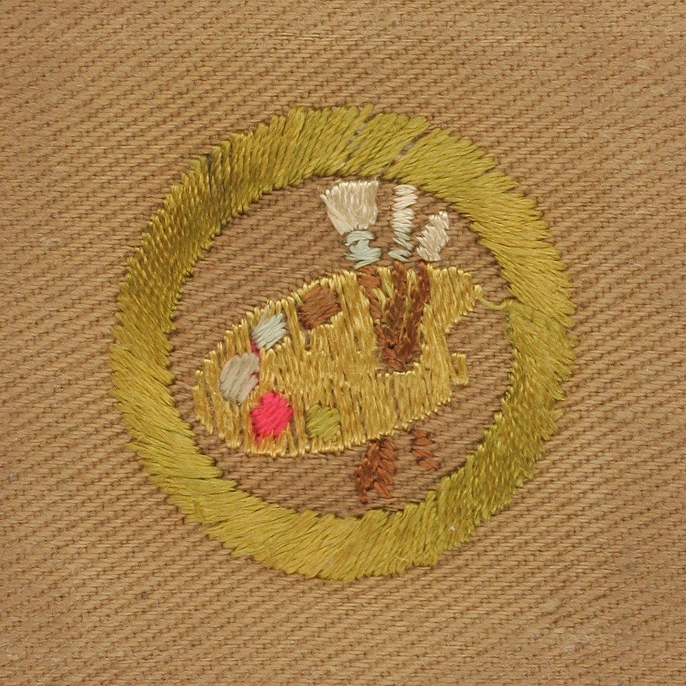 - Tan Lightweight Cloth with Cotton Lockstitch Embroidery and Plain Back 1939 - 42