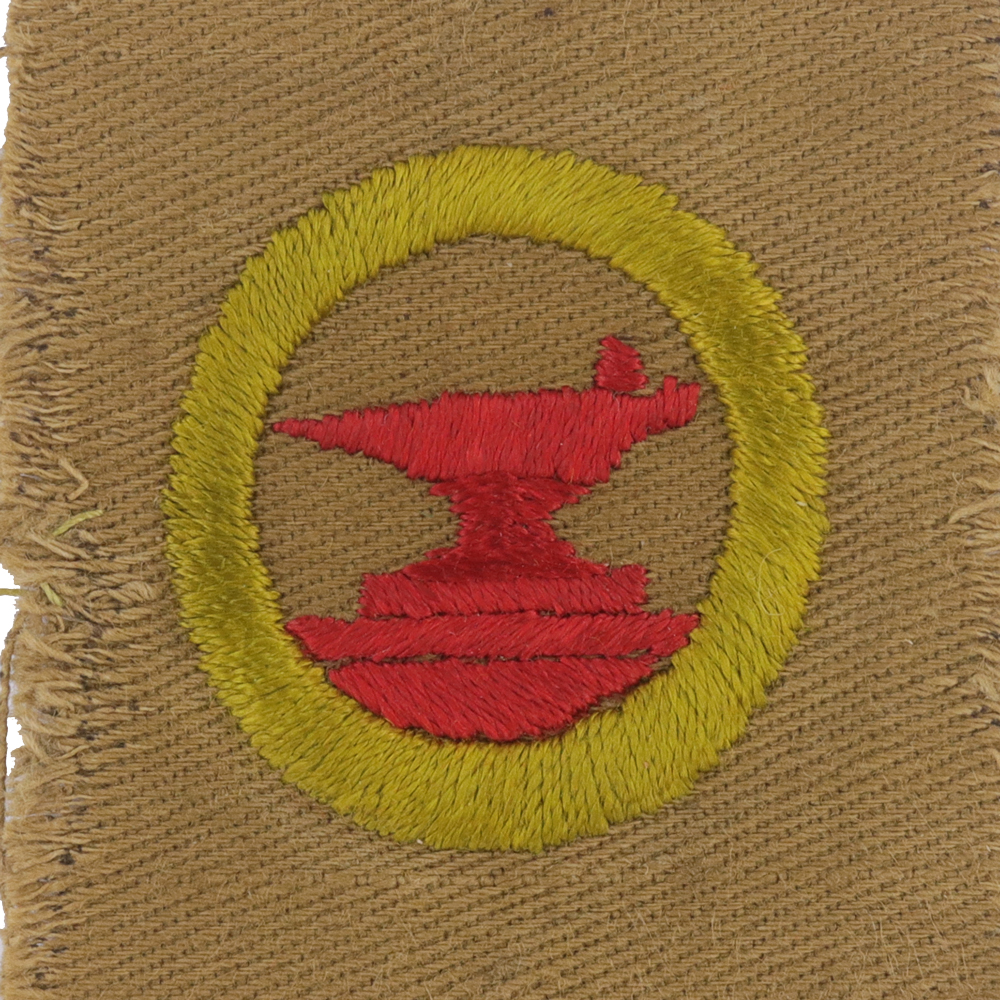 - Design: Right end of anvil body is square, base of anvil appears to have lips, center of mouth embroidery slanted left, closed mouth, horn is chiseled shape and rounded