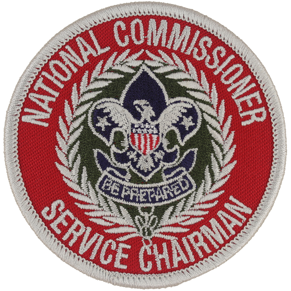 - Design: Blue First Class emblem with gray outline, wreath, and gray lettering "NATIONAL CO mmISSIONER SERVICE CHAIRMAN"