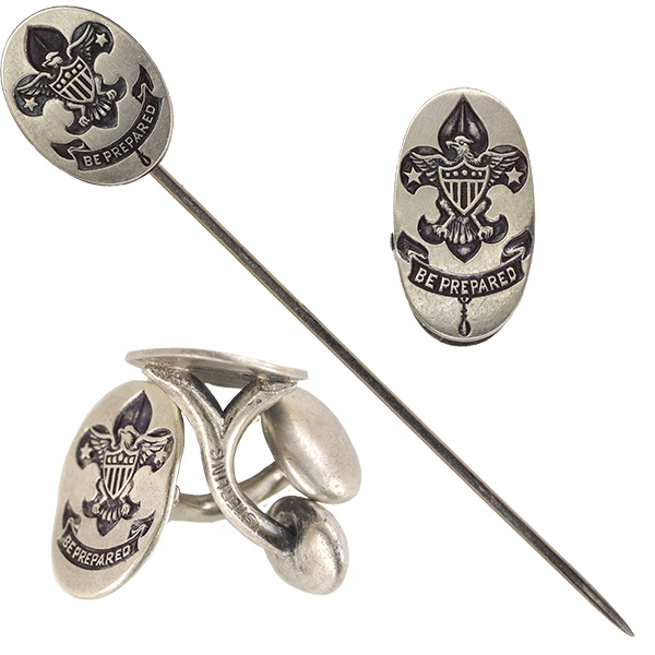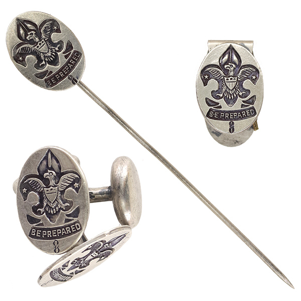 - Consist of sterling silver scarf pin, cuff links and tie clasp; sterling silver oxidized finish