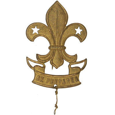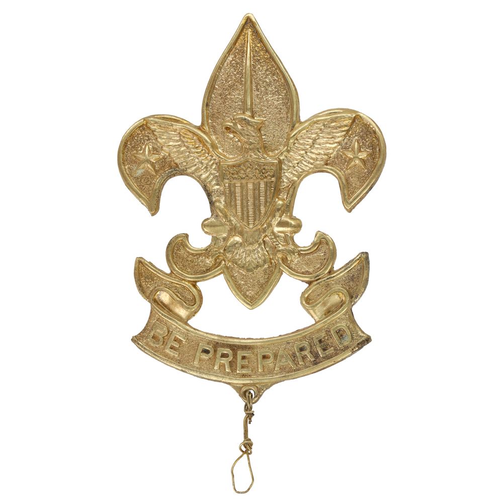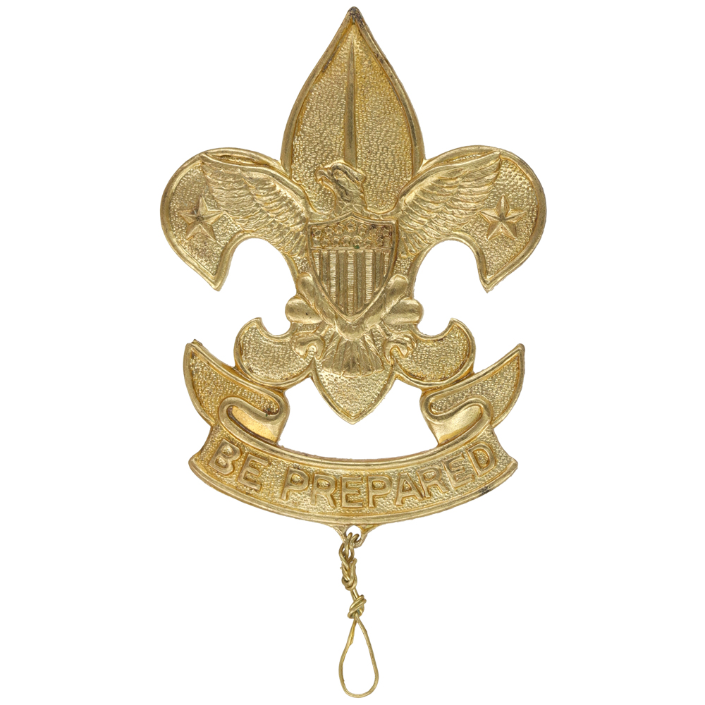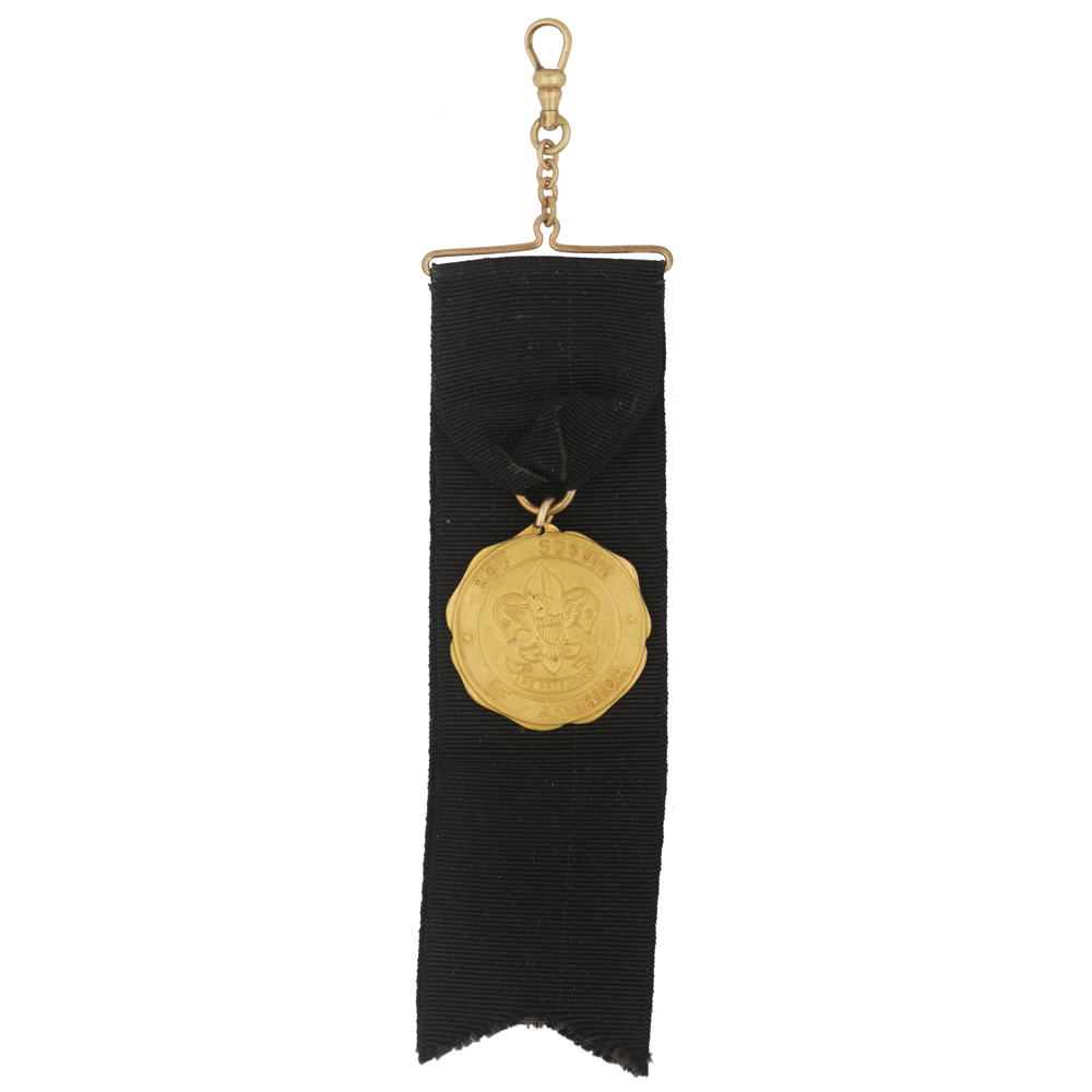- Heavy grosgrain silk ribbon, First Class emblem, polished gilded medal fob, gold chain and clasp