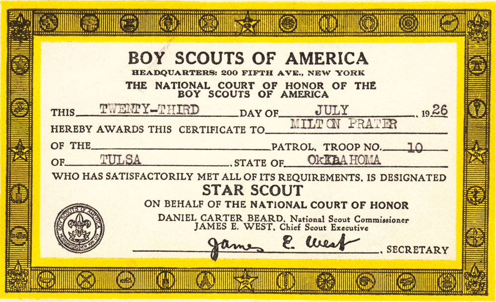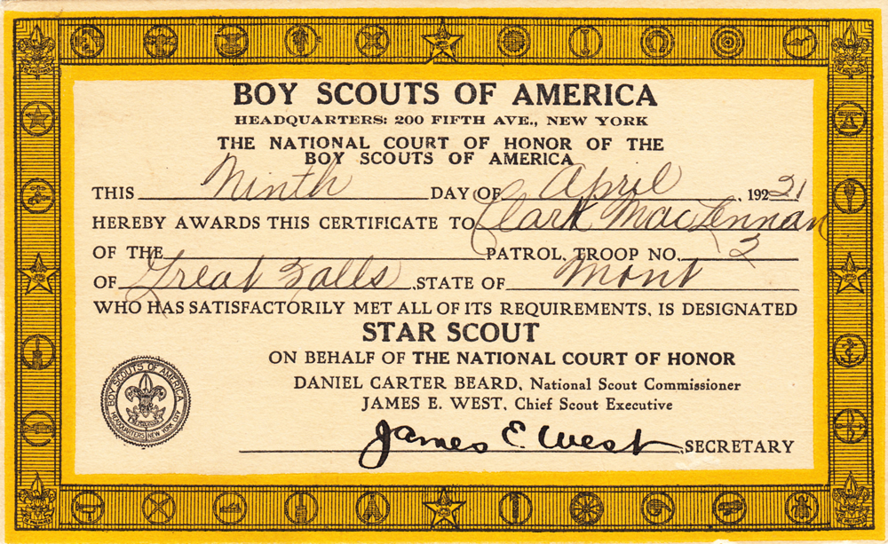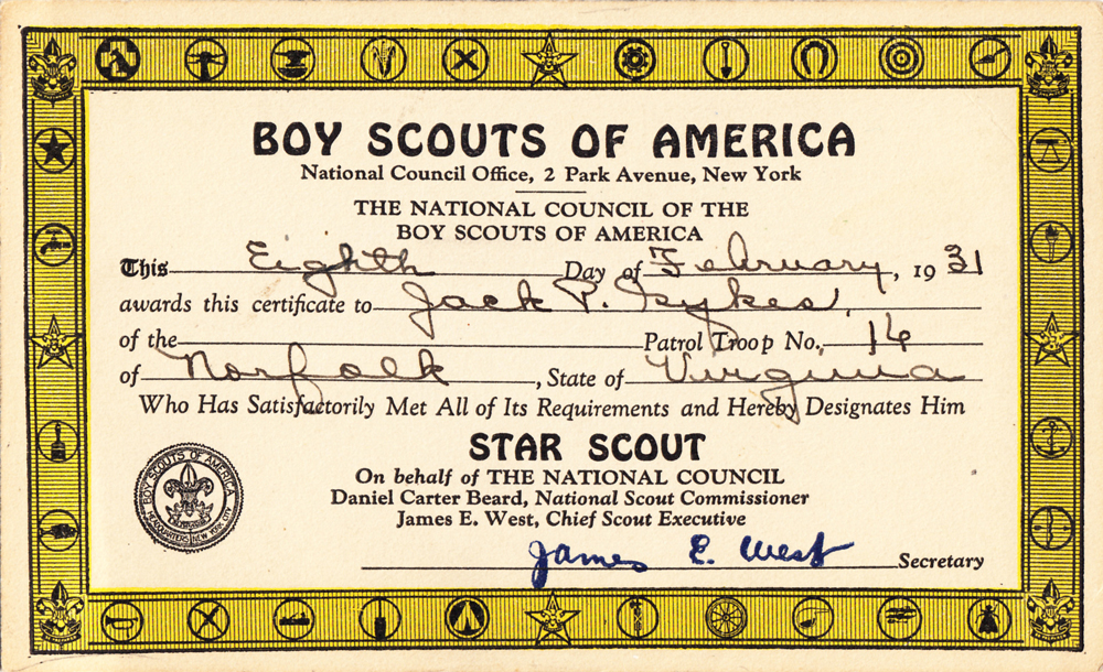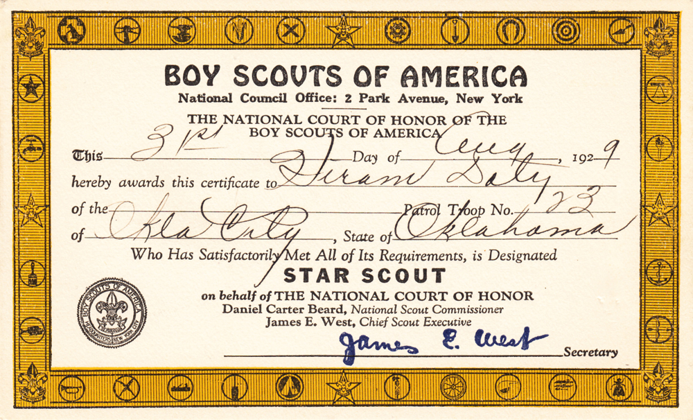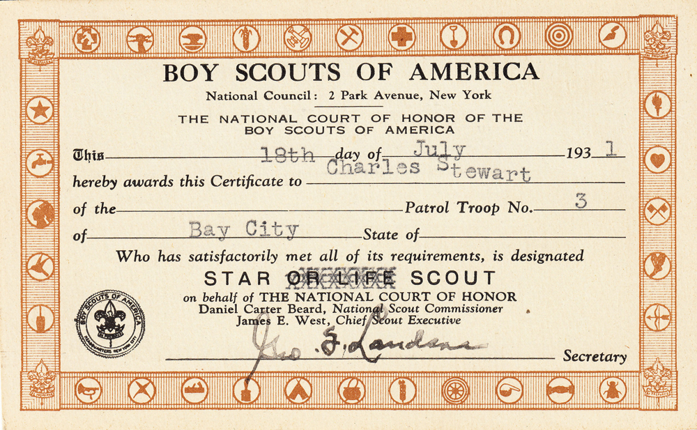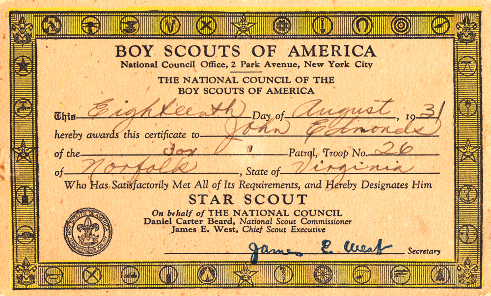 - Text: "STAR SCOUT" font change, "and Hereby Designates Him" added above STAR SCOUT