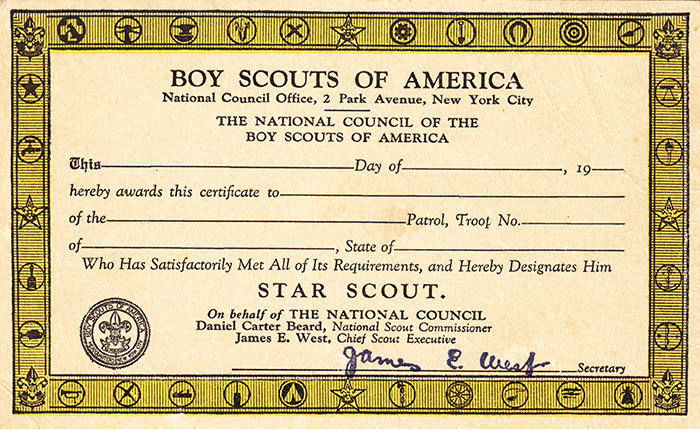 - Text: "STAR SCOUT" font change, address changed to: National Council Office, 2 Park Avenue, New York City