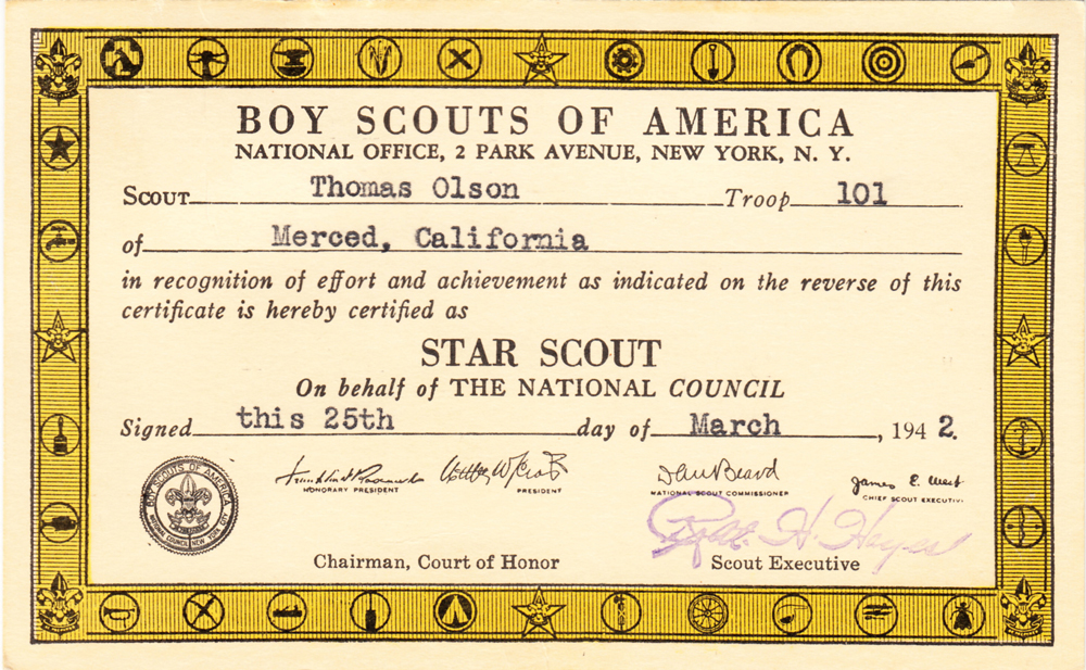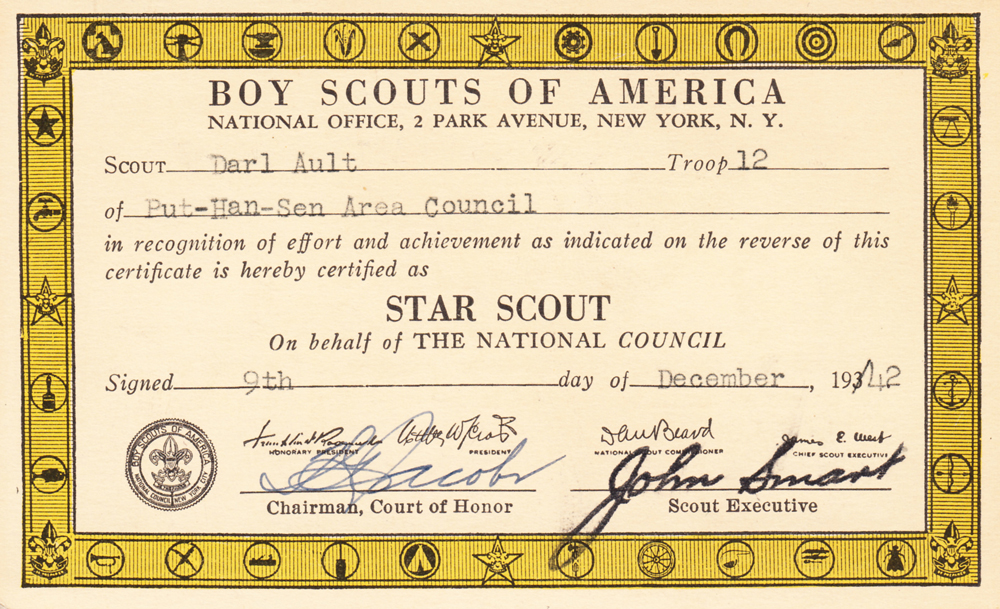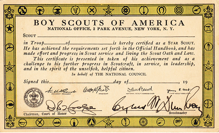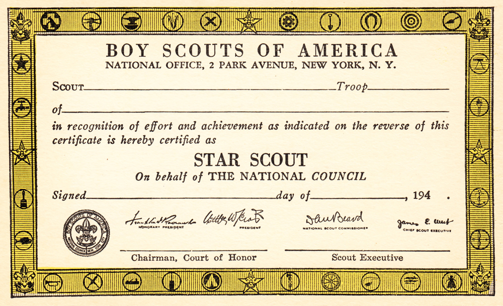 - Text: "STAR SCOUT" font change, address changed to: National Council Office, 2 Park Avenue, New York City