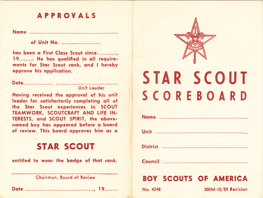 Star Scout Score Board 1959 - 1964