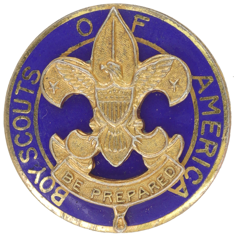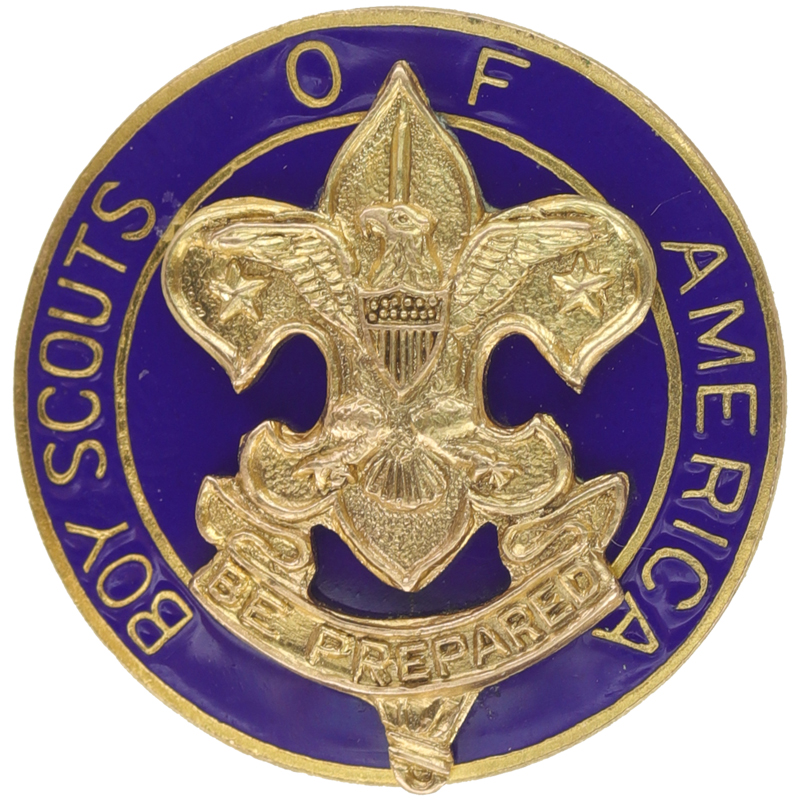 - Design: 3 dimensional tall crown first class, gold "BOY SCOUTS OF AMERICA"
