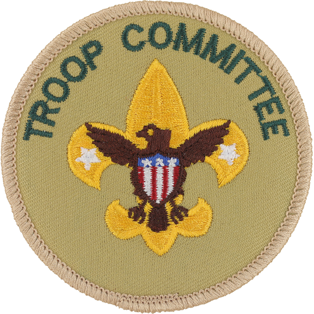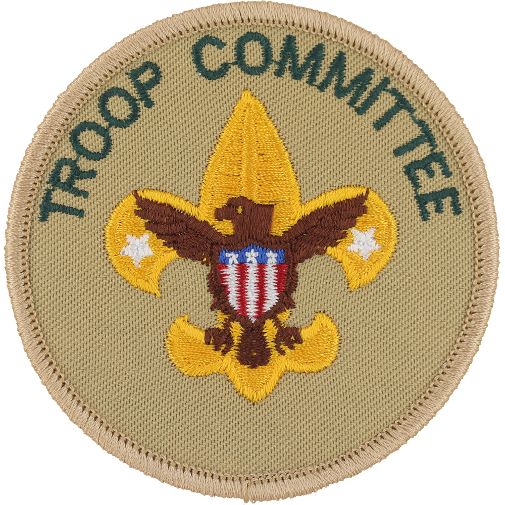 - Design: Gold tenderfoot emblem with brown eagle, tan border and green lettering "TROOP CO mmITTEE"