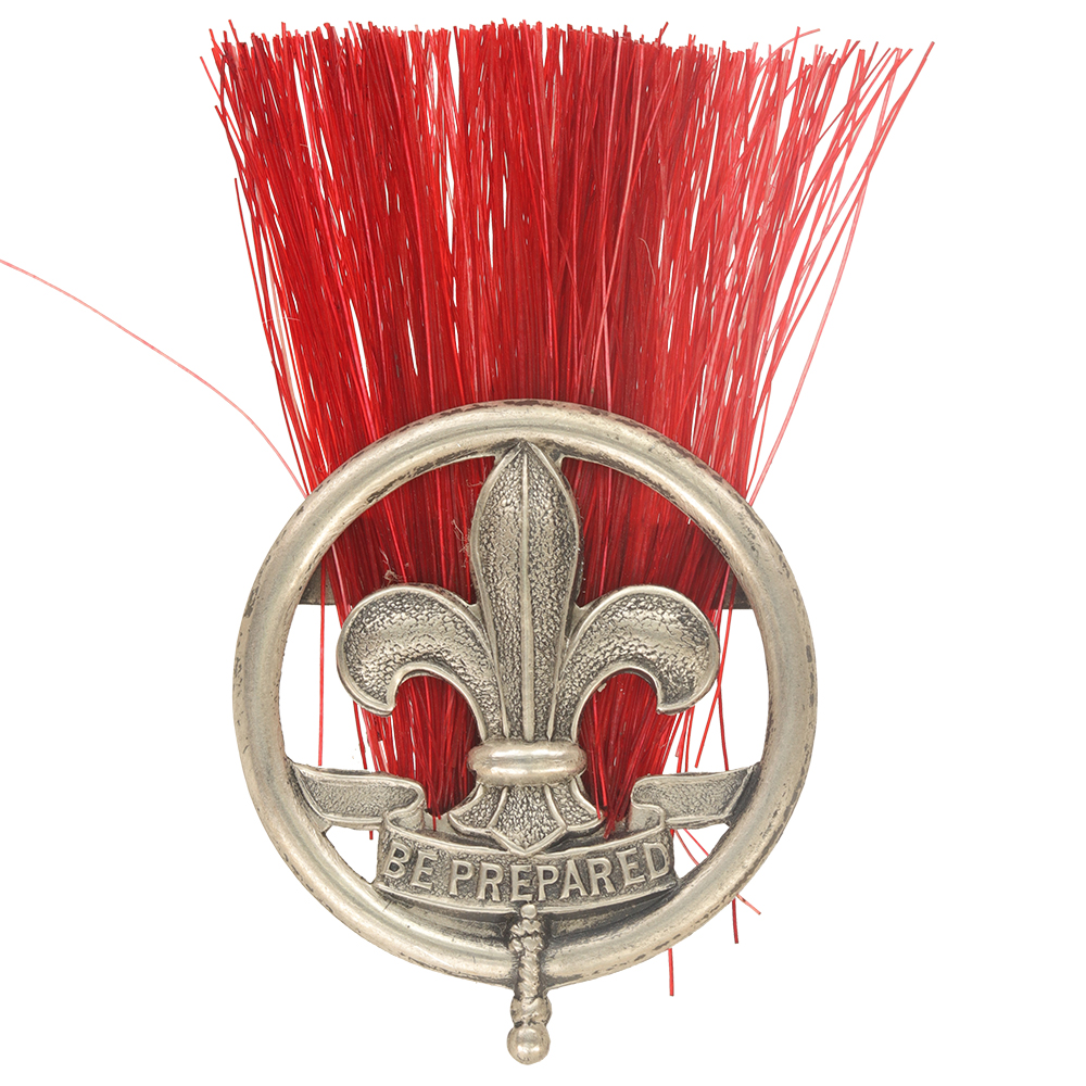 - Design: First class without truth & knowledge stars, single horizontal bar across trefoil, BE PREPARED scroll