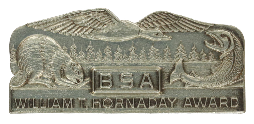 Design: Duck, beaver and fish, raised lettering "WILLIAM T. HORNADAY AWARD"