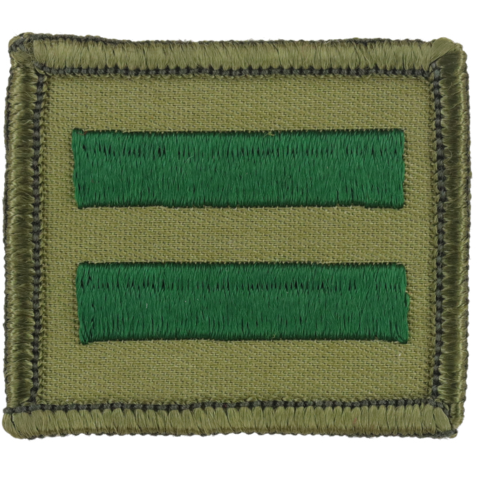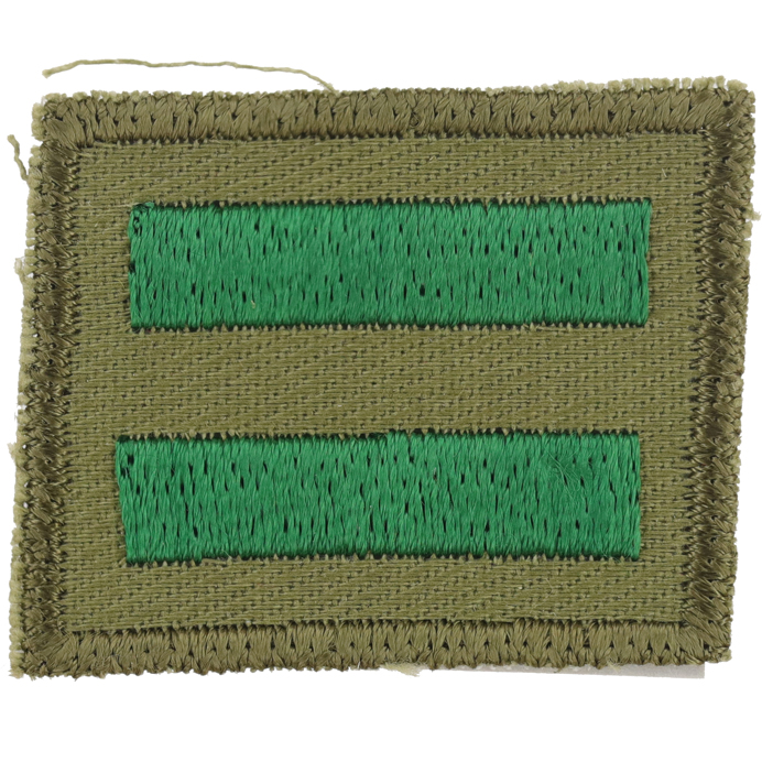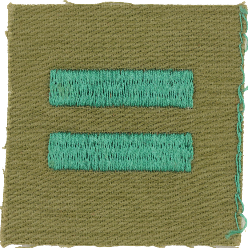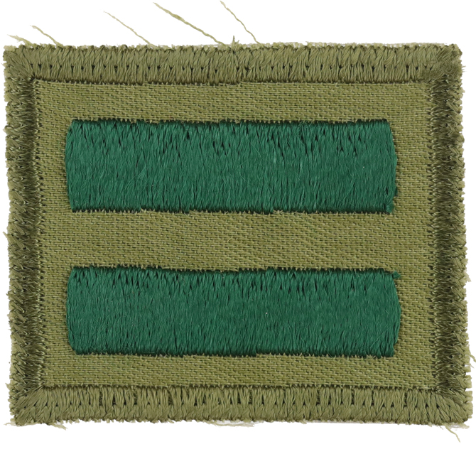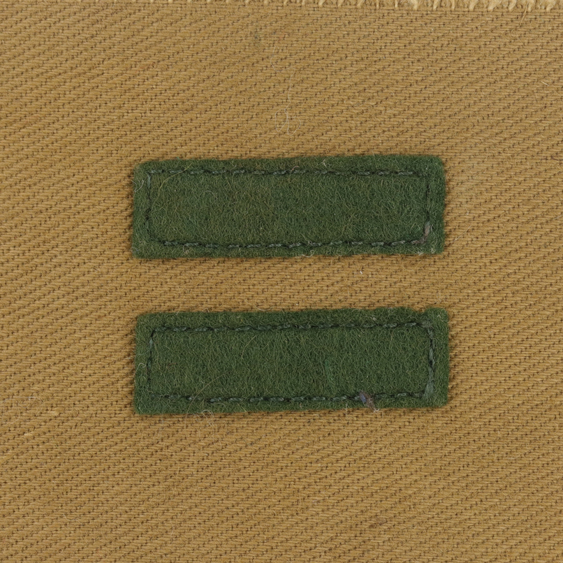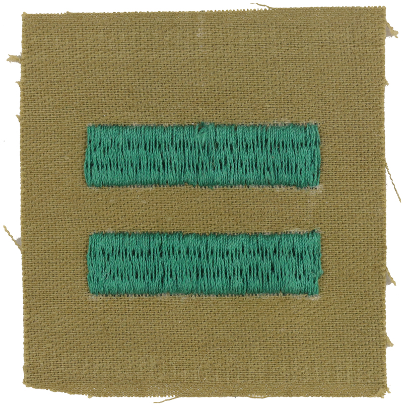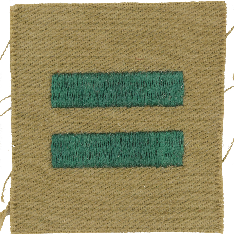 - Emblem: Two separate white woven cotton bars sewn onto the uniform