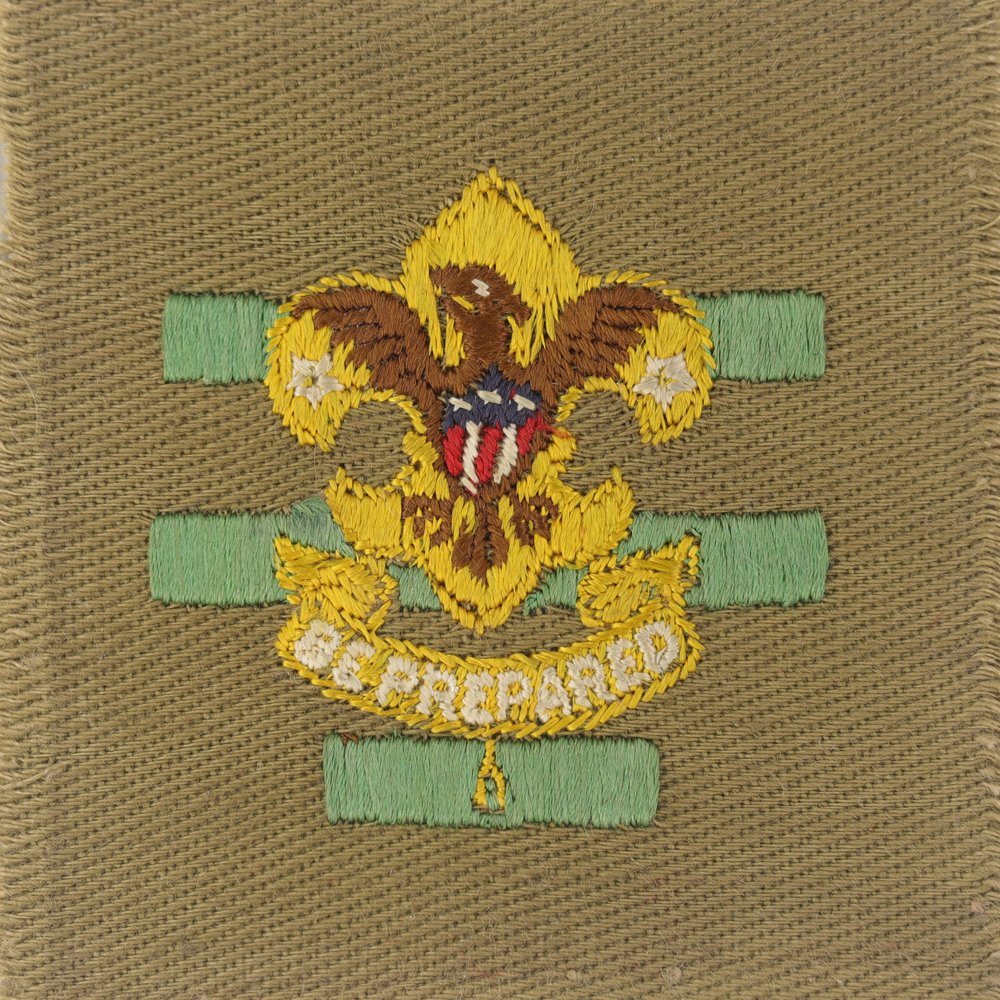 - Emblem: 48mm including knot, gold tall crown 1st class with brown eagle, vertical stitched smile, 7mm bar width