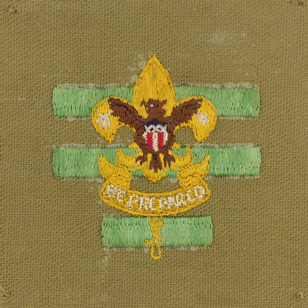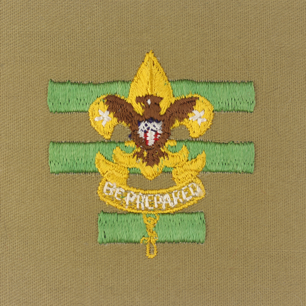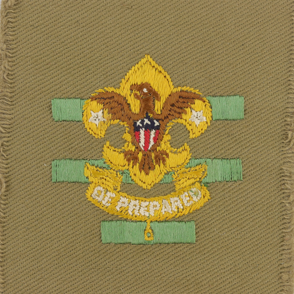 - Emblem: Gold tall crown 1st class with brown eagle, horizontal stitched smile