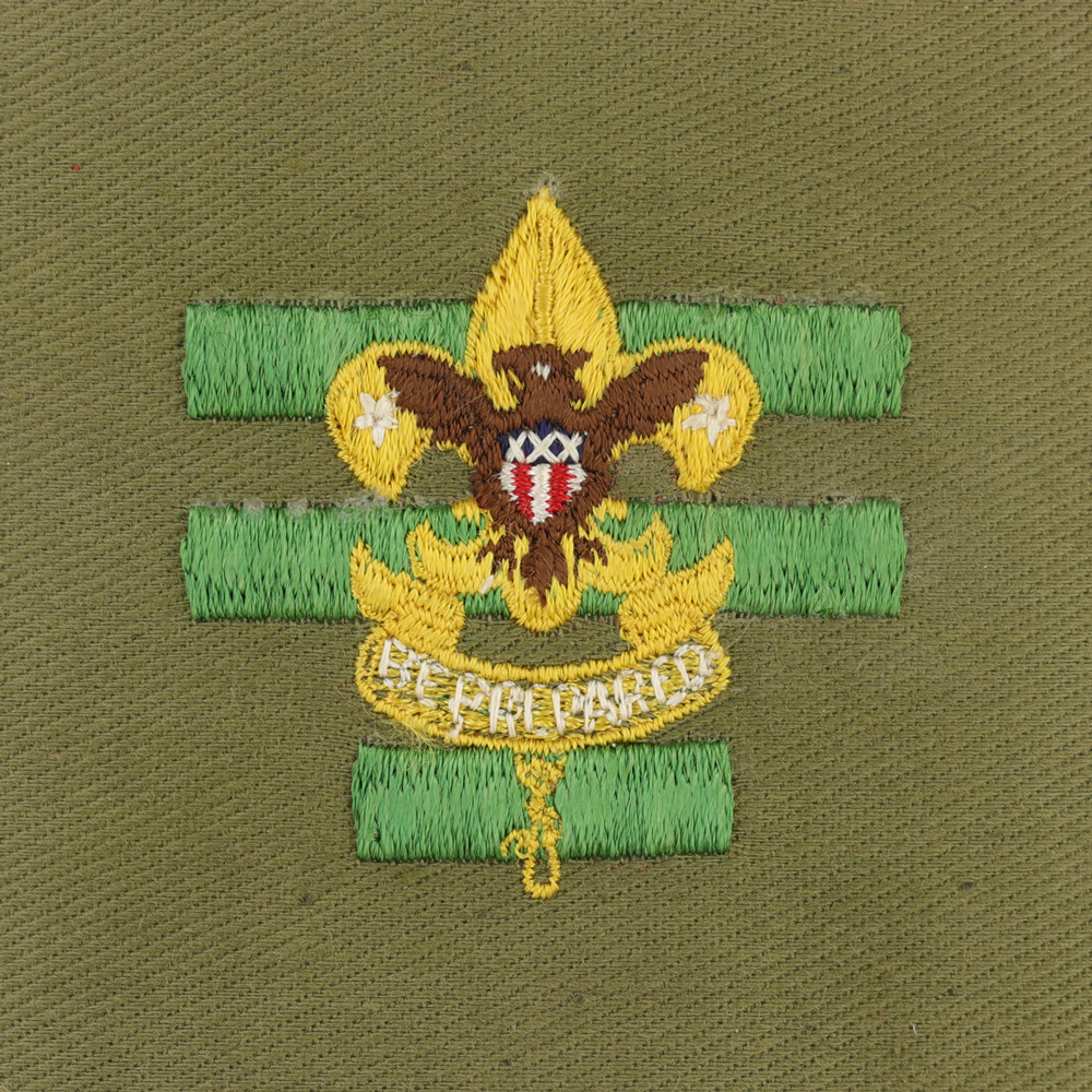 - Emblem: 48mm including knot, gold tall crown 1st class with brown eagle, vertical stitched smile