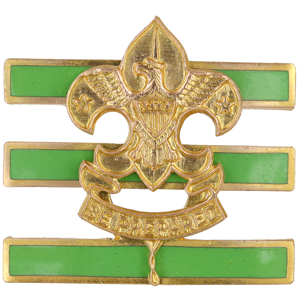 - Emblem Design: 48mm Gold Tenderfoot with brown eagle, stars in shield star shape, 5 tail feathers