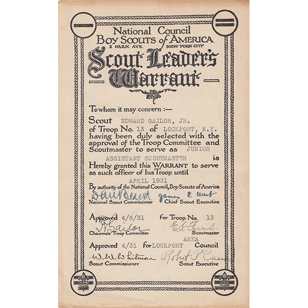 Junior Assistant Scoutmaster's Warrant 1952 - 1959