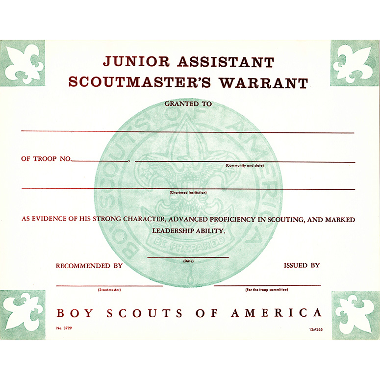 Junior Assistant Scoutmaster's Warrant 1959 - 1972