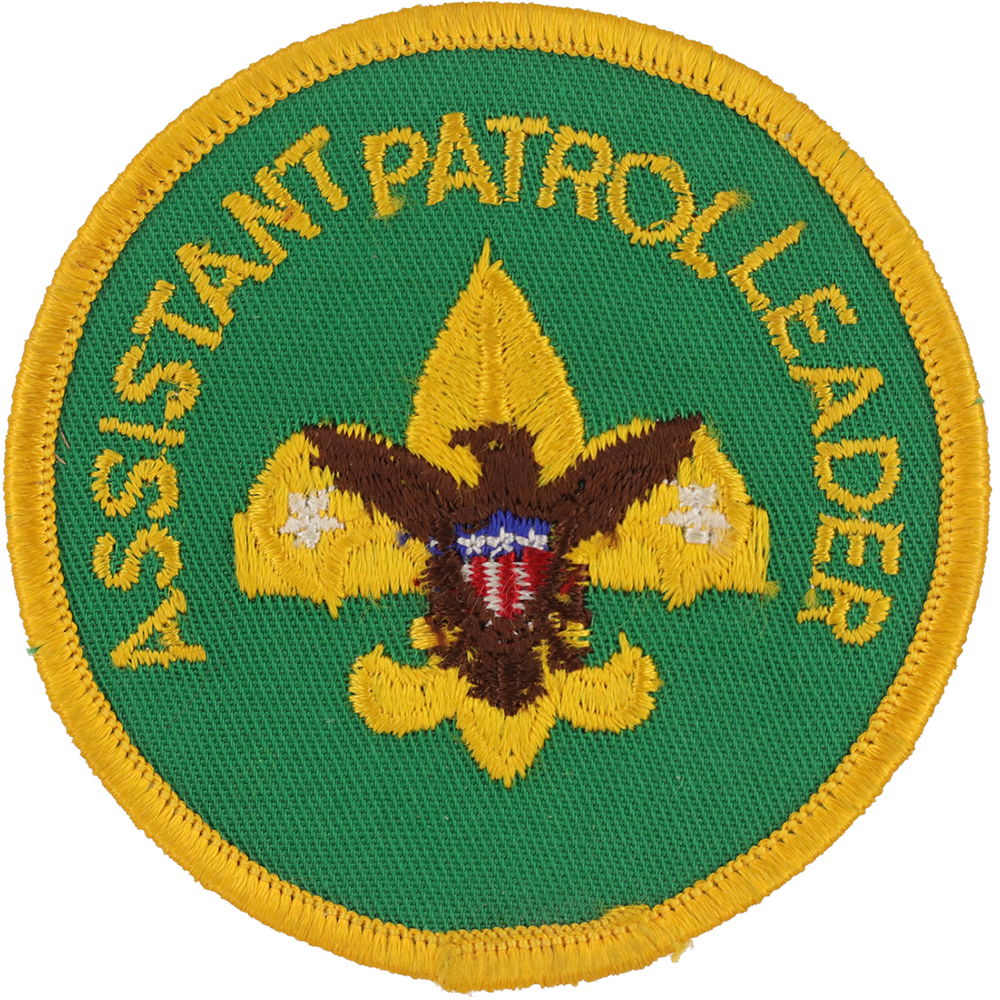 - Emblem Design: 40mm Gold Tenderfoot with brown eagle, 3 distinct stars, 3 tail feathers slightly narrower at top than bottom, "PATROL" is out of alignment, vertical stitching in base of FDL