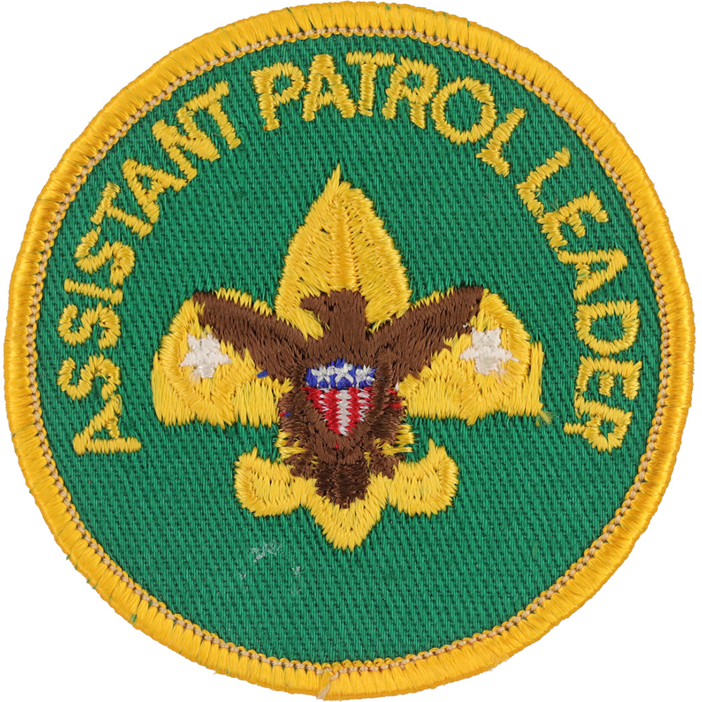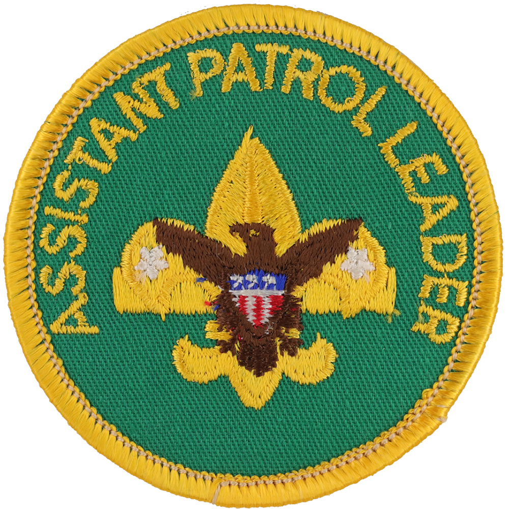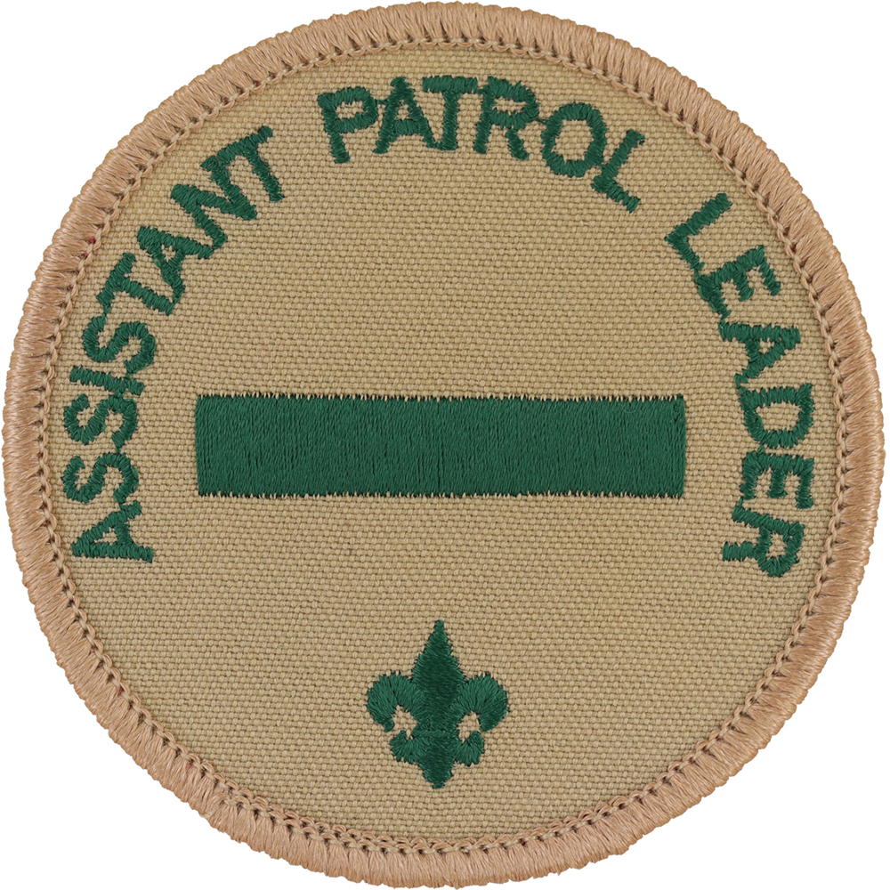 - Emblem Design: 40mm Gold Tenderfoot with brown eagle, 3 distinct stars, 3 tail feathers narrower at top than bottom, "O" in patrol is elliptical, horizontal stitching in base of FDL