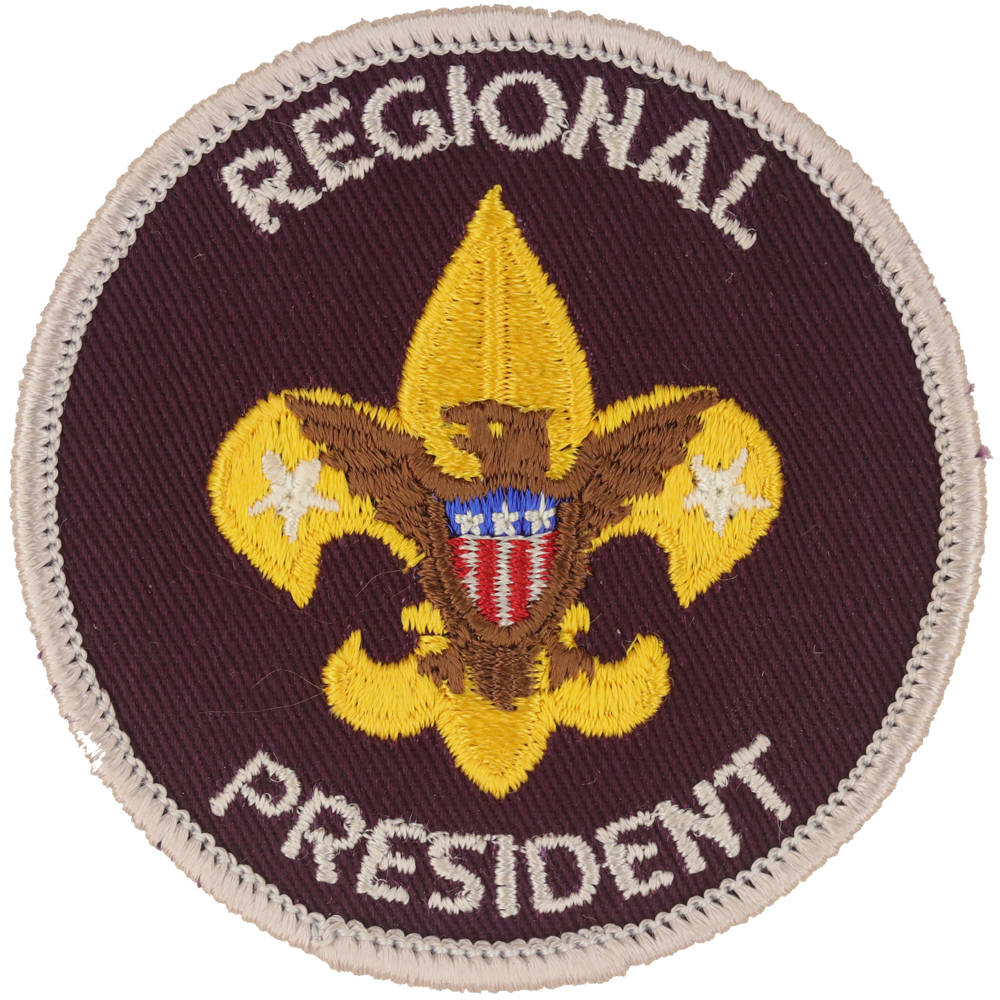 - Design: Gold tenderfoot emblem with brown eagle, and silver lettering "REGIONAL PRESIDENT"