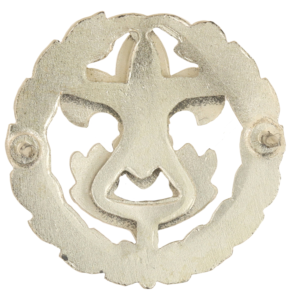 - Design: 13 stars in shield, closed beak, 3 dimensional tall crown gold first class, silver wreath, silver outline on First Class, gold eagle, blue enamel First Class badge