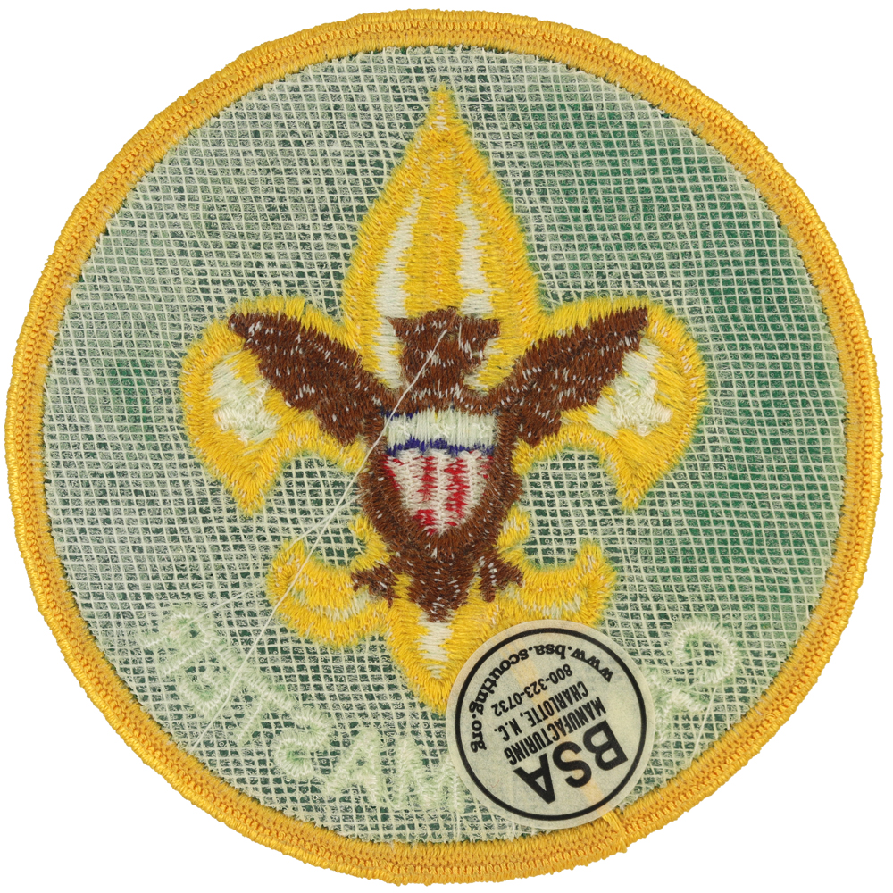 - Design: Gold tenderfoot emblem with brown eagle, and white lettering "CAMP MASTER"