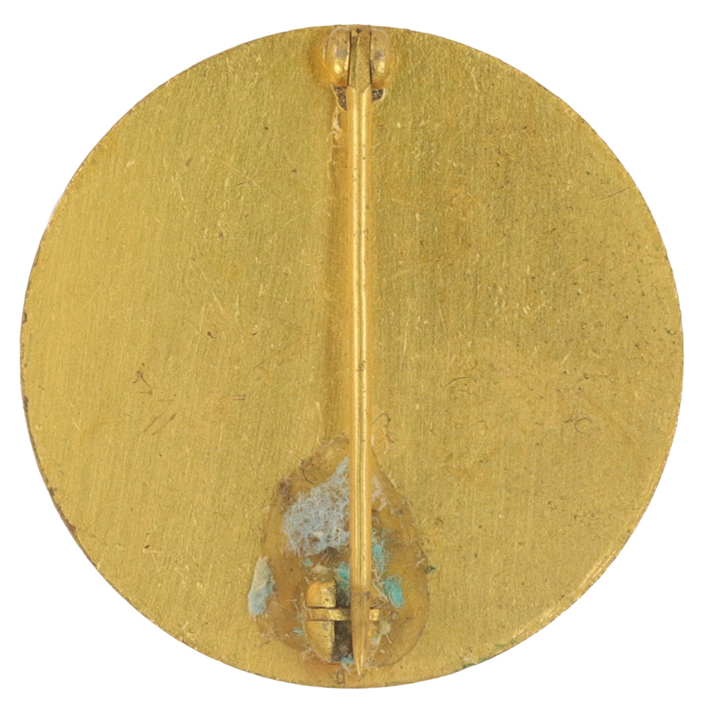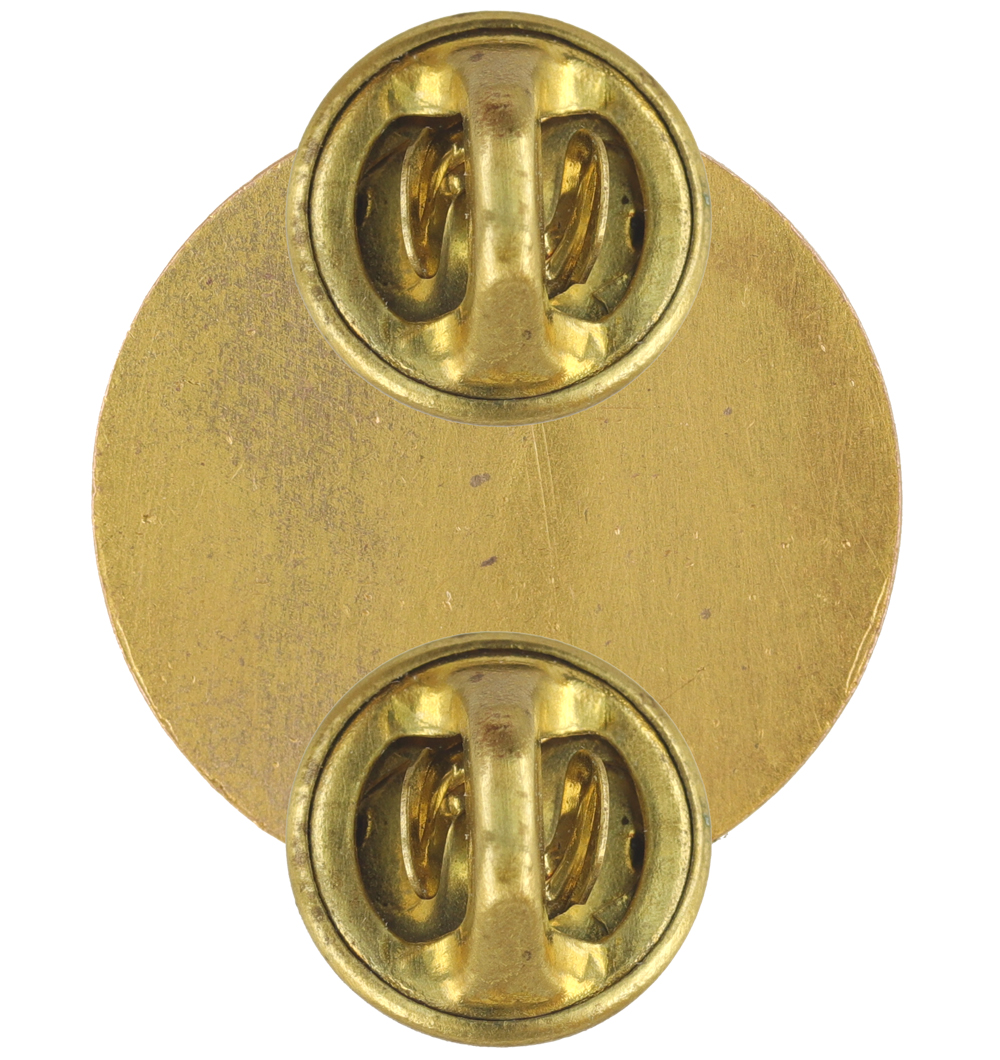 - Design: Gold wreath, 3 dimensional tall crown gold first class, blue enamel between wreath and First Class point, gold hands pointing to sides, normal fdl shoulders, long fdl bottom point