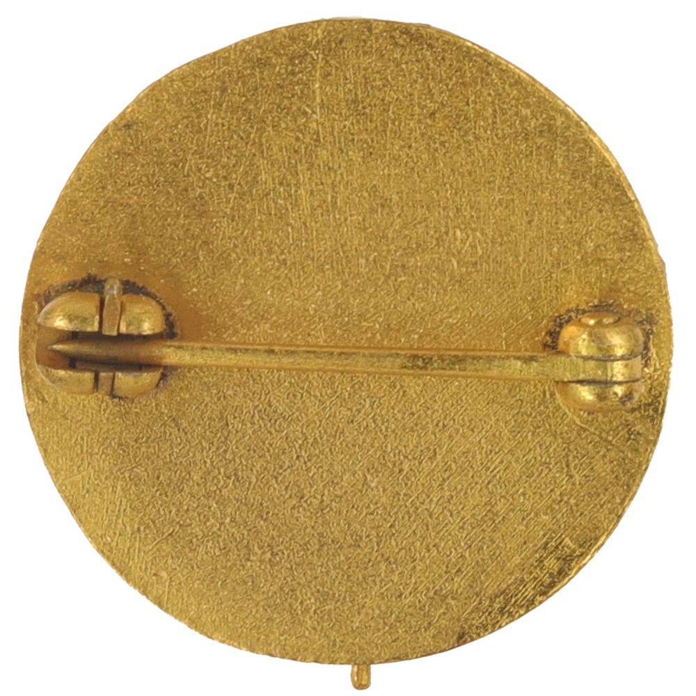 - Design: Gold wreath, 3 dimensional tall crown gold first class, First Class point touches edge of pin, 1 gold hand pointing down, rounded fdl shoulders, short fdl bottom poin