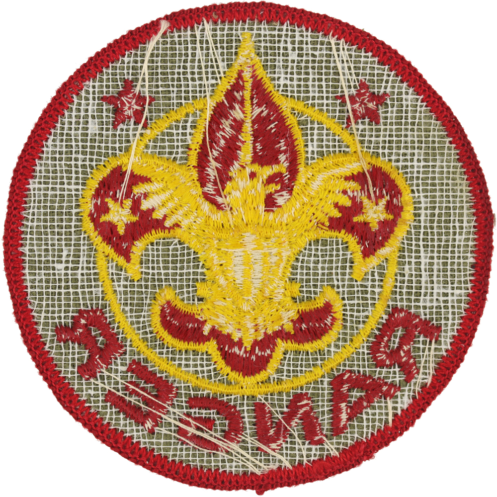 - Design: Red Tenderfoot emblem with gold eagle and outline, red border