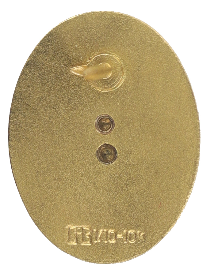 - Design: Fine pebble border between the outer and inner ovals surrounding the Blue-White-Red enamel