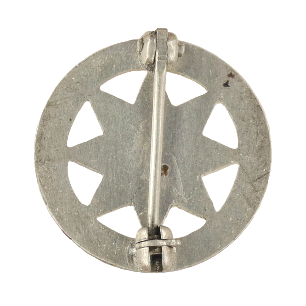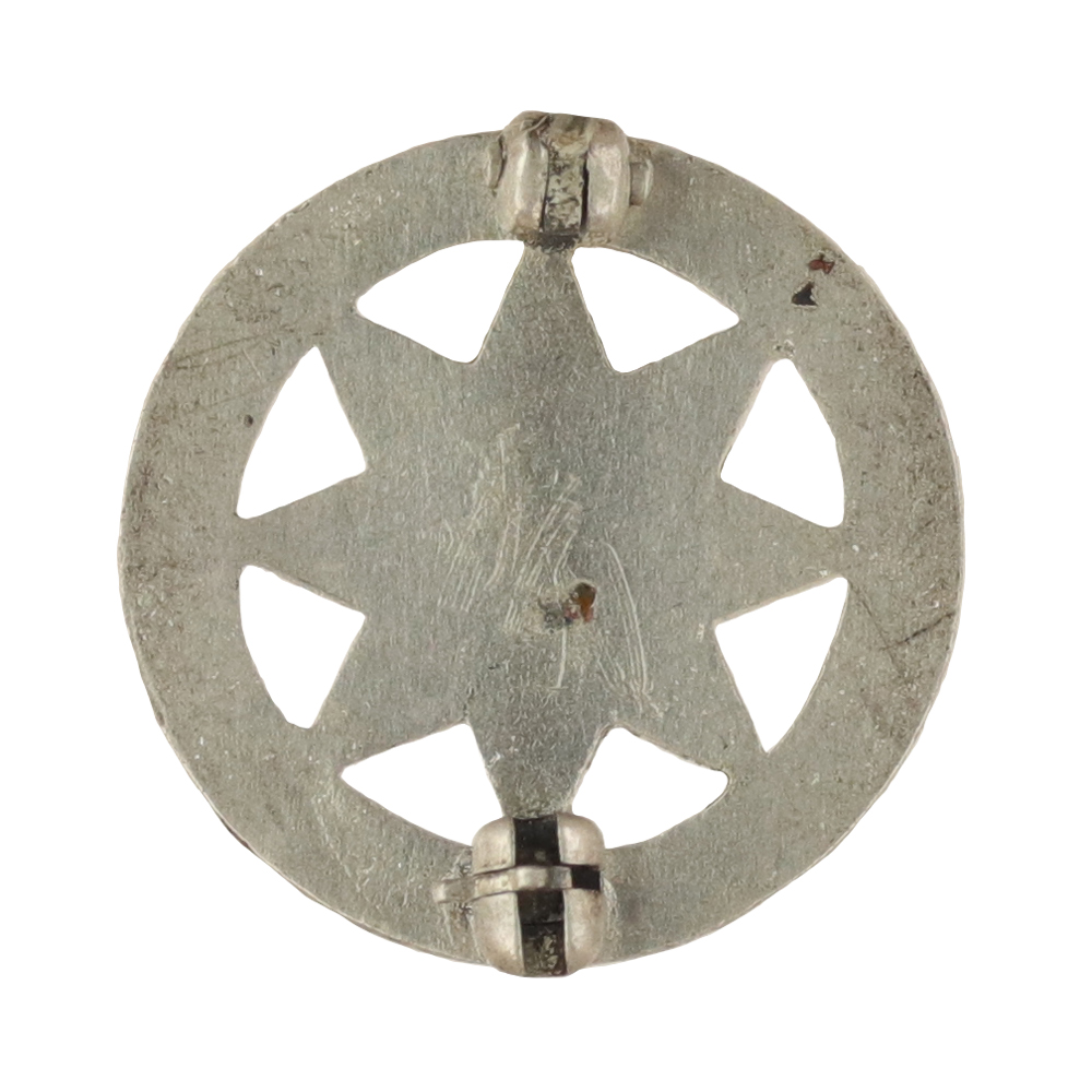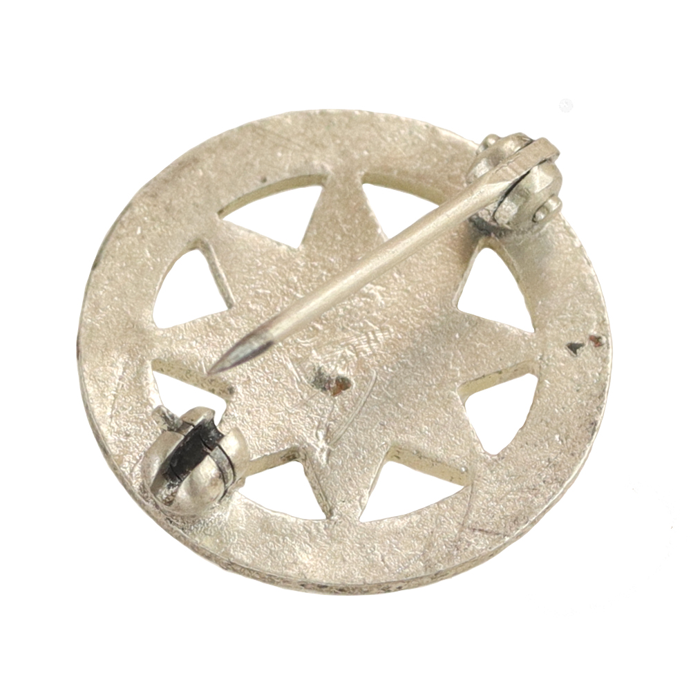 - Design: Silver border, silver 8 point star, silver First Class emblem all with green enameling
