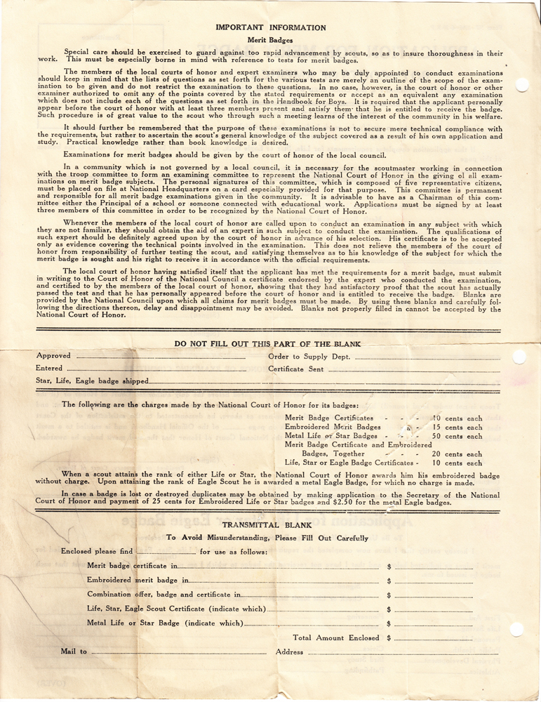 Item Name: Merit Badge Application 1920 - 1921