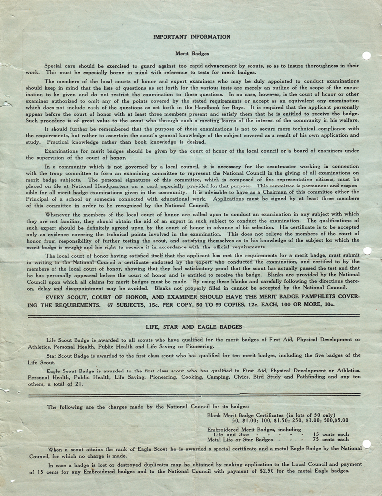 Item Name: Merit Badge Application 1922 -