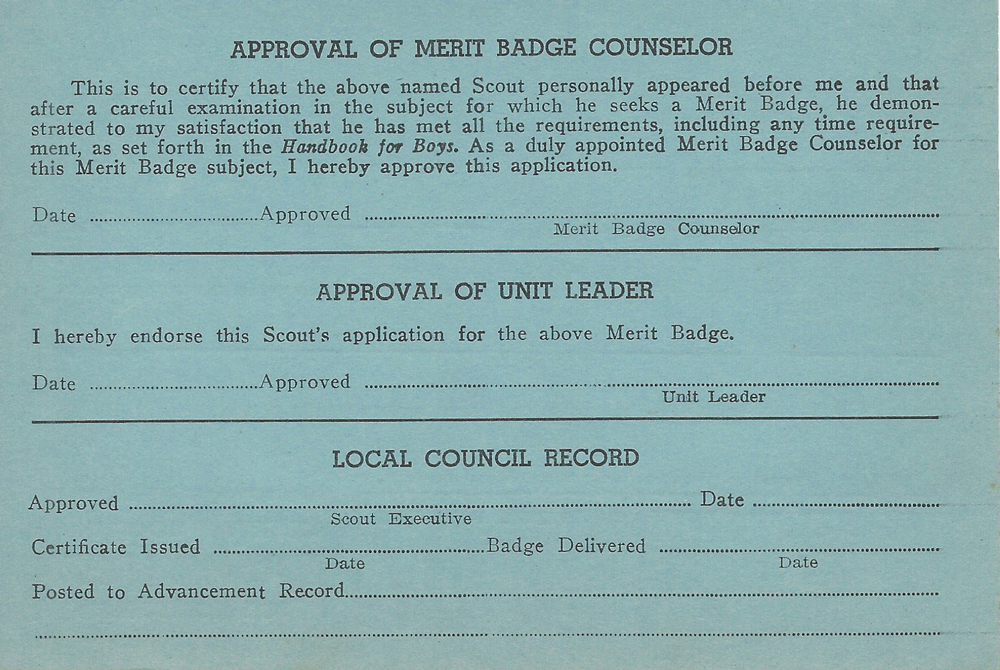 Item Name: Merit Badge Application 1949 - 1950
