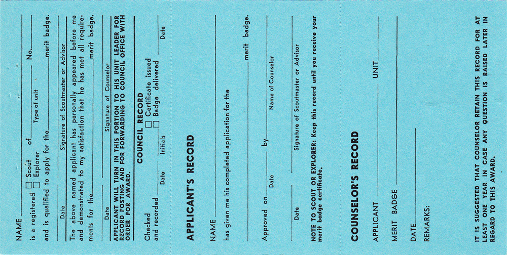 Item Name: Merit Badge Application 1955 - 1958