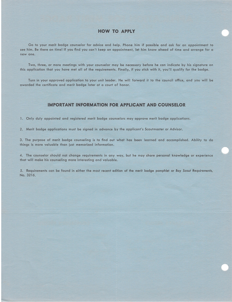 Item Name: Merit Badge Application 1969 - 1970
