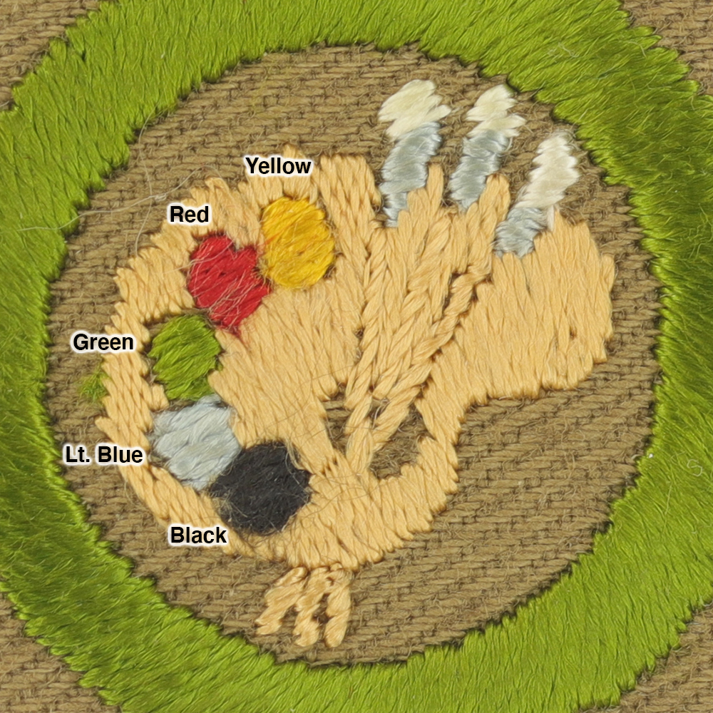 - Design: Palette colors counterclockwise from top: Yellow, red, green, light blue, and black