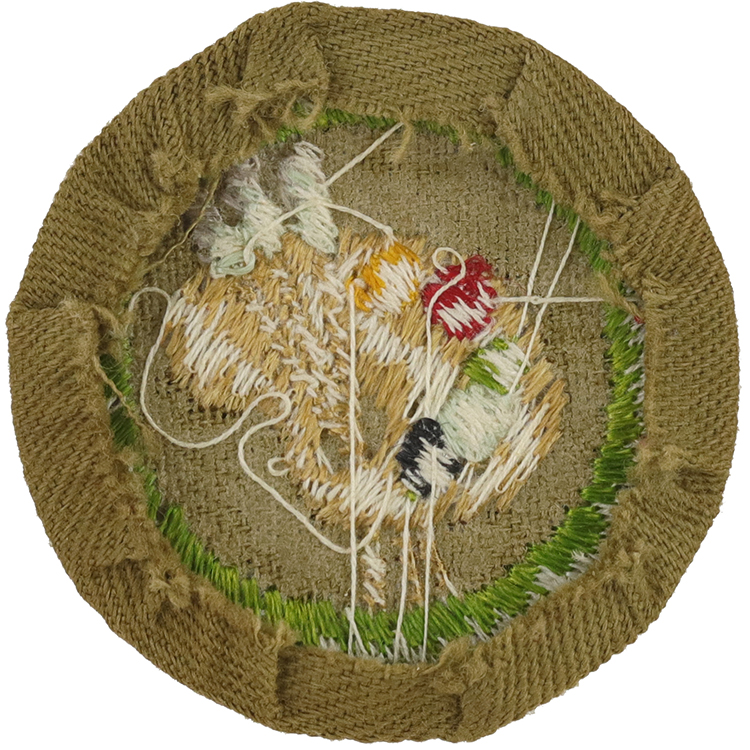 - Tan Lightweight Cloth with Cotton Lockstitch Embroidery and Plain Back 1939 - 42