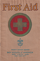 9. Produce satisfactory evidence that he has taken advantage of every opportunity to put into actual practice his knowledge of first-aid work during a period of at least six months since becoming a first class scout. (Badge-green cross on red ground.)