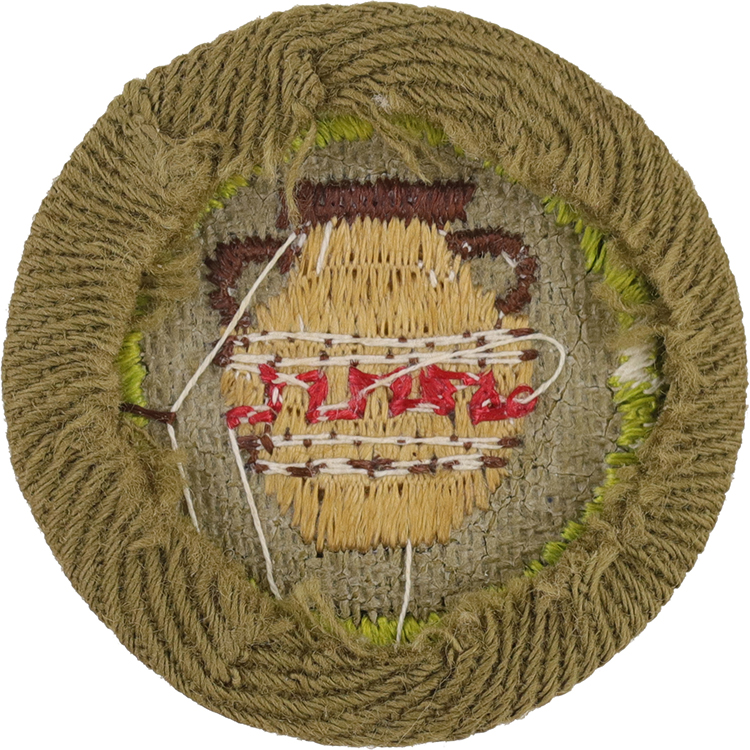 - Tan Lightweight Cloth with Cotton Lockstitch Embroidery and Plain Back 1939 - 42
