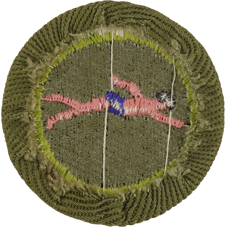 3. In water 6 feet or more deep, while dressed in cotton shirt and cotton trousers, remove trousers, tie overhand knot in the bottom of each leg, inflate trousers and float motionless for one minute using them for support; OR, while dressed as above, tread water, inflate shirt and float motionless for one minute.