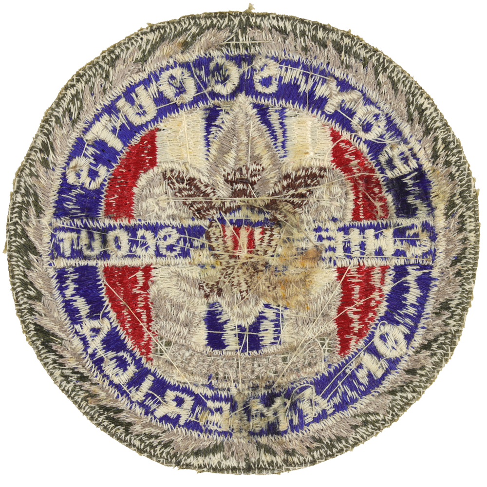 - Design: Silver First Class with brown eagle, red-white-blue-white-red behind First class emblem, blue outer ring with silver "BOY SCOUTS OF AMERICA", blue crossbar with silver "CHIEF SCOUT"