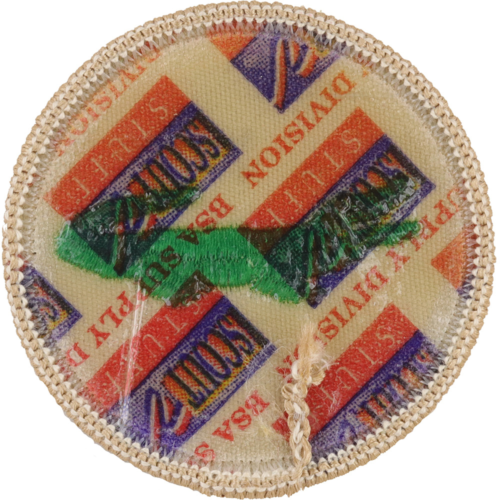 - Minor variation: Pellon reinforced molded plastic with Scout Stuff image back