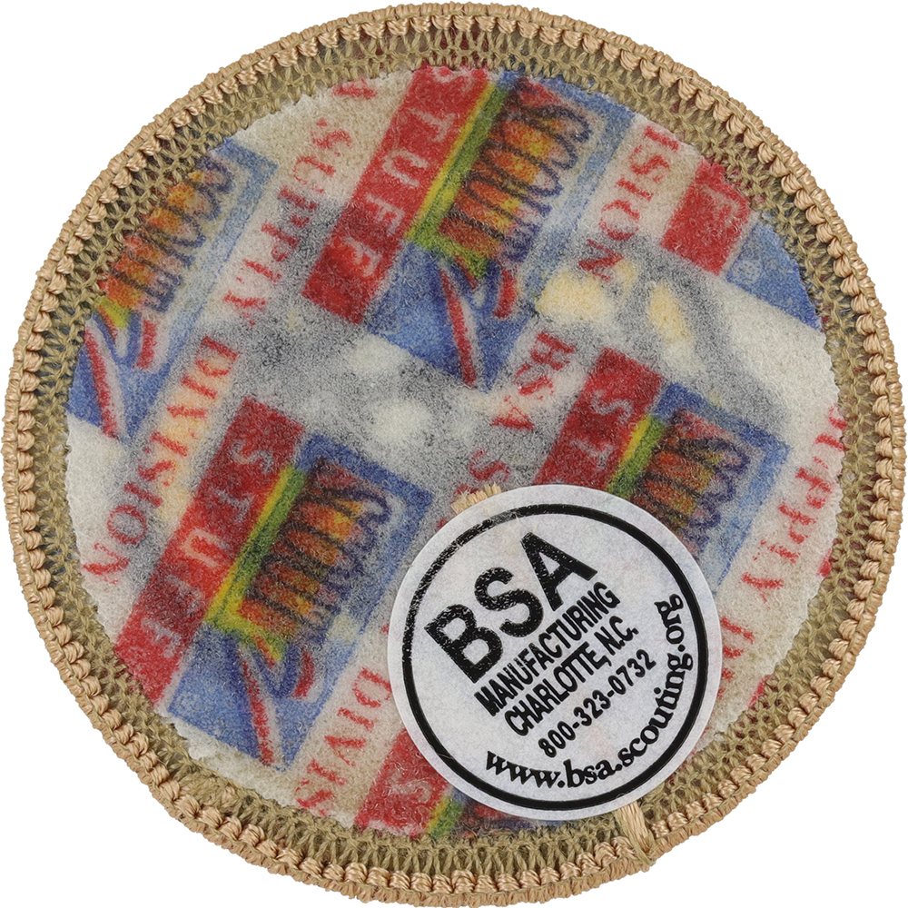 - Minor variation: Pellon reinforced molded plastic with Scout Stuff image back